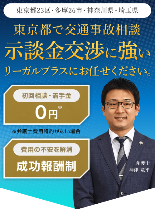 【相談料・着手金:0円、成功報酬制、賠償金の適正診断:0円】3,000件を超える相談実績と解決事例も豊富な交通事故に強いリーガルプラスは、事故直後から保険会社との示談交渉まで、ご依頼者に寄り添い丁寧にサポートいたします。