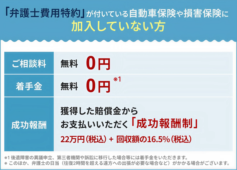 【初回相談:5.5千円/30分┃着手金0円】弁護士特約の利用で実質相談料0円!「骨折や脳損傷に対する十分な補償がされない…」適切な慰謝料を目指し、事故直後から解決まで徹底サポート!【弁護士直通TEL┃全国・オンライン対応】